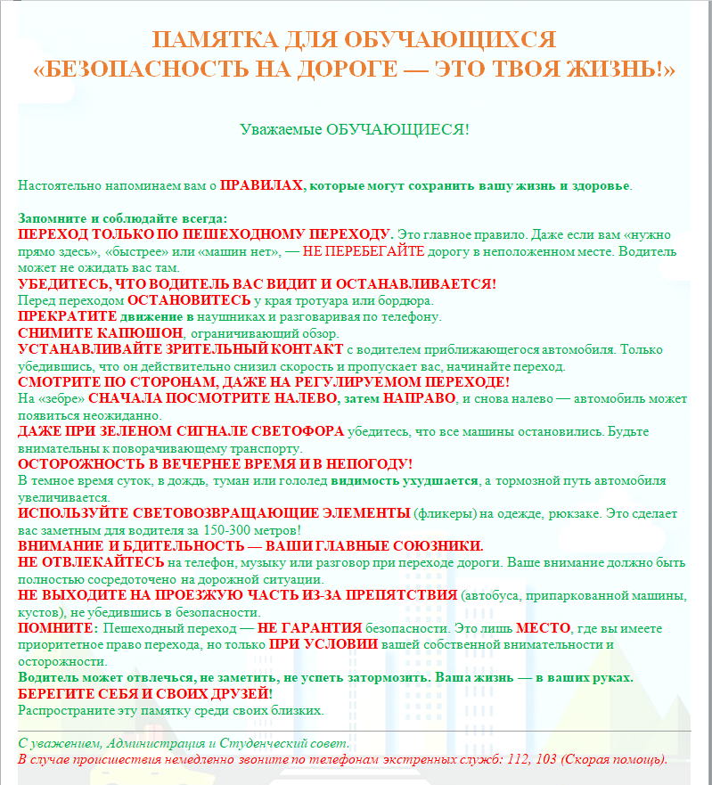 БЕЗОПАСНОСТЬ НА ДОРОГЕ — ЭТО ТВОЯ ЖИЗНЬ!Объявления / 15.01.2026 15.01.2026 Памятка «БЕЗОПАСНОСТЬ НА ДОРОГЕ — ЭТО ТВОЯ ЖИЗНЬ!»