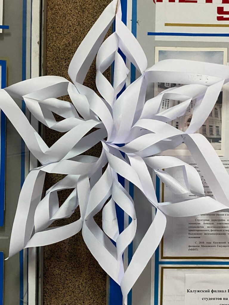 В холле Калужского филиала ПГУПС открылась удивительная выставка-конкурс новогодних снежинок, сделанных руками наших талантливых студентов.