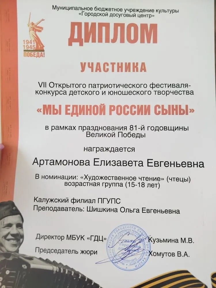 Одной из участниц стала обучающаяся нашего техникума Артамонова Елизавета со своим произведением «Ваш Алёша…». Каждая строчка и не поддельные эмоции участников проникали под кожу …до мурашек. Это ещё раз доказывает, что наши дети- талантливы во всём.