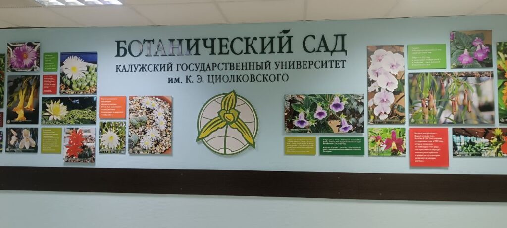 Он познакомил их с богатой экспозицией, которая насчитывает более 400 минералов, горных пород и окаменелостей, 1300 видов высшей флоры, расположенных по эколого-географическому принципу, а также располагает аквариумами, где воспроизведена флора рек из разных уголков мира. В ходе экскурсии студенты получили представление о географии растений, породах, разведанных на территории Калужской области, узнали, с чего можно начать коллекционирование ископаемых. Одним из главных достояний экспозиции можно считать «Царицу ночи» — кактус, который цветёт лишь одну ночь в году. Растение было передано в Ботанический сад КГУ из Санкт-Петербургского Ботанического сада Петра Великого, и с ним связана одна из многочисленных героических страниц города на Неве: учёный-садовод Николай Курнаков спас кактус во время блокады, за что был награждён орденом Трудового Красного Знамени, а растение стало одним из главных достопримечательностей. С 2019 года оно экспонируется и в Калуге.