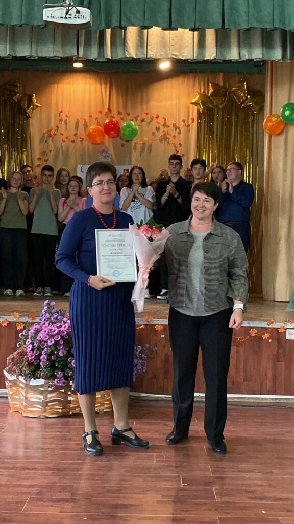 А кульминацией вечера стало торжественное вручение почетной грамоты! Наталья Вячеславовна Дубникова, ведущий специалист Московско-Смоленского регионального обособленного подразделения Дорпрофжел, лично вручила награду Е.А. Фроловой — председателю Первичной профсоюзной организации нашего филиала. Поздравляем от всей души!