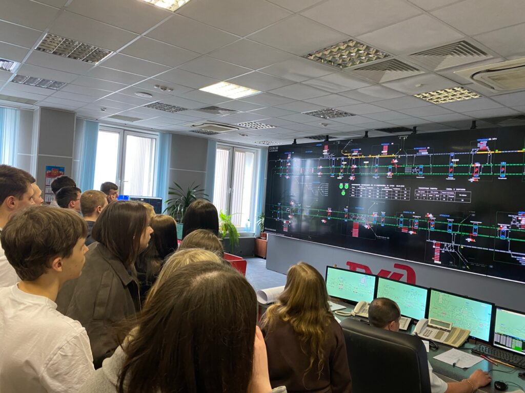 Ключевой частью урока стало посещение Диспетчерский центр управления перевозками (ДЦУП). Здесь студенты оказались в настоящем ситуационном центре, откуда координируется движение поездов на обширном полигоне дороги.