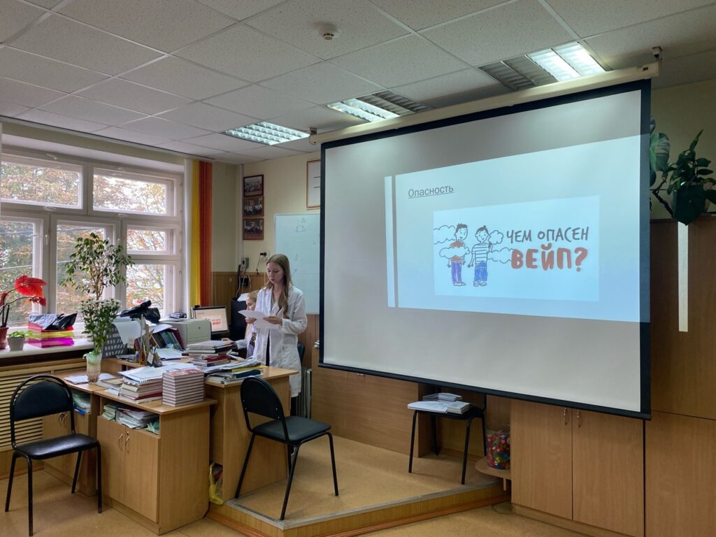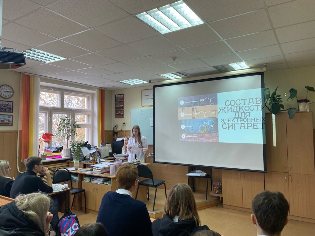На мероприятии состоялась лекция, подготовленная студентами 3 курса КГУ Медицинского института (факультет Лечебное дело) — Вареничевой А.Е. и Потаповой В.С. Темой беседы стала профилактика вреда парения никотиносодержащих девайсов и снюса.