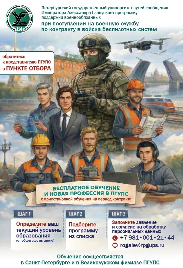 Бесплатное обучение и новая профессия в ПГУПС при поступлении на военную службу по контракту в войсках беспилотных систем